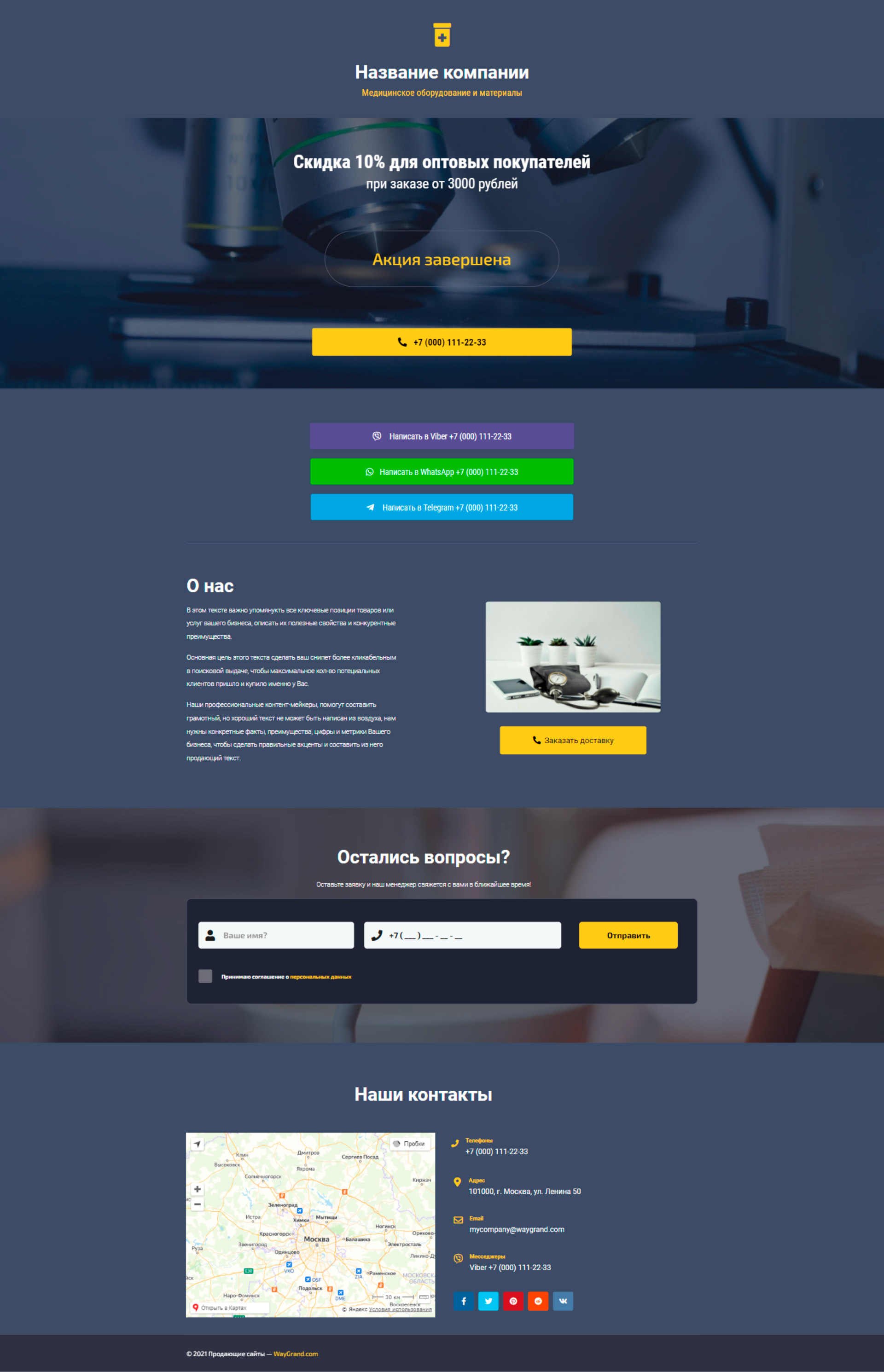 Закажите готовый продающий сайт визитка #1027101 в Липецке за 5-7 дня «под ключ»: свёрстан, отрисован и готов к рекламе. Тематика шаблона «Медицинское оборудование и материалы».