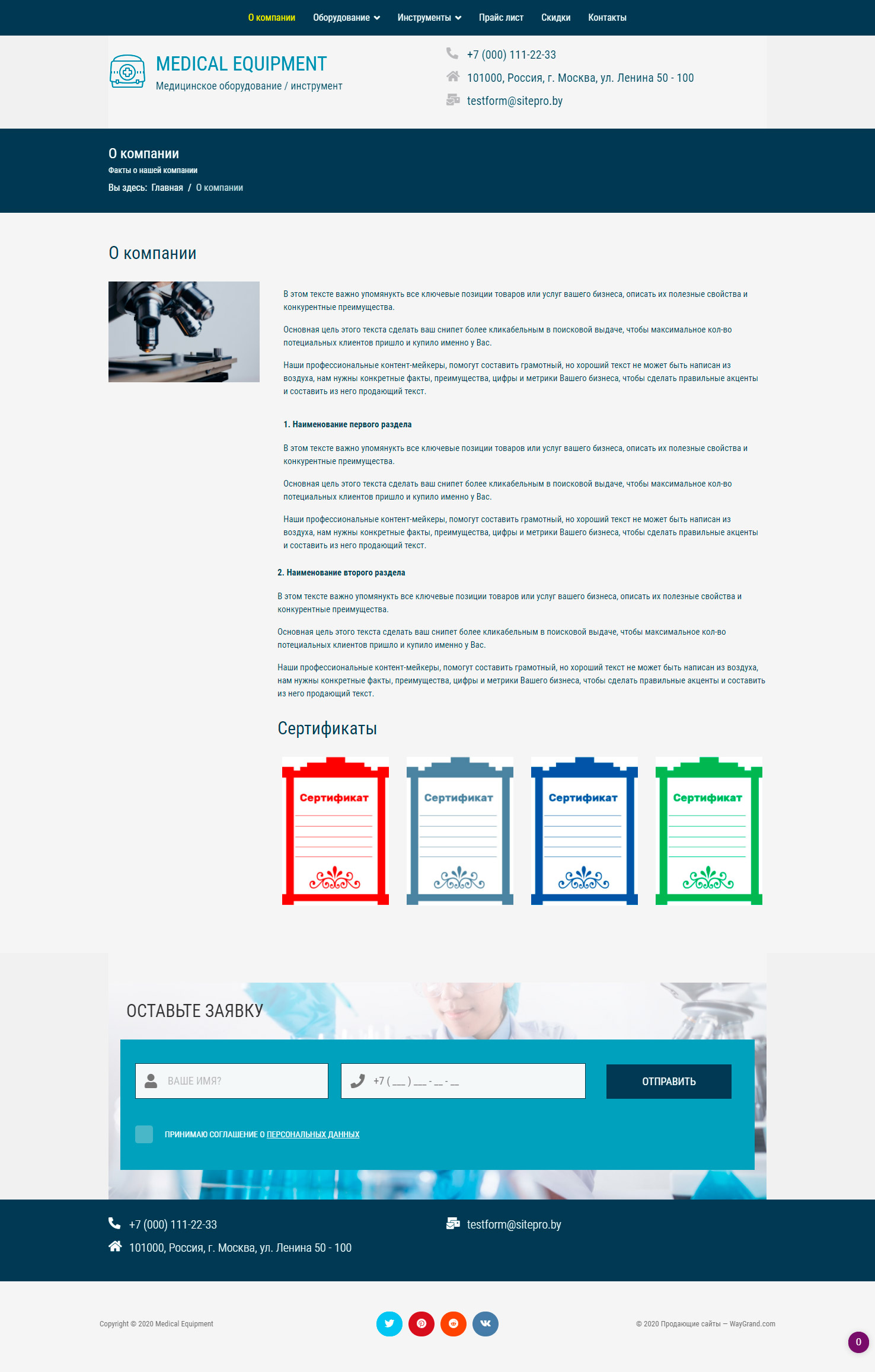 Закажите готовый продающий сайт визитка #1029301 в Липецке за 5-7 дня «под ключ»: свёрстан, отрисован и готов к рекламе. Тематика шаблона «Медицинское оборудование / инструмент».