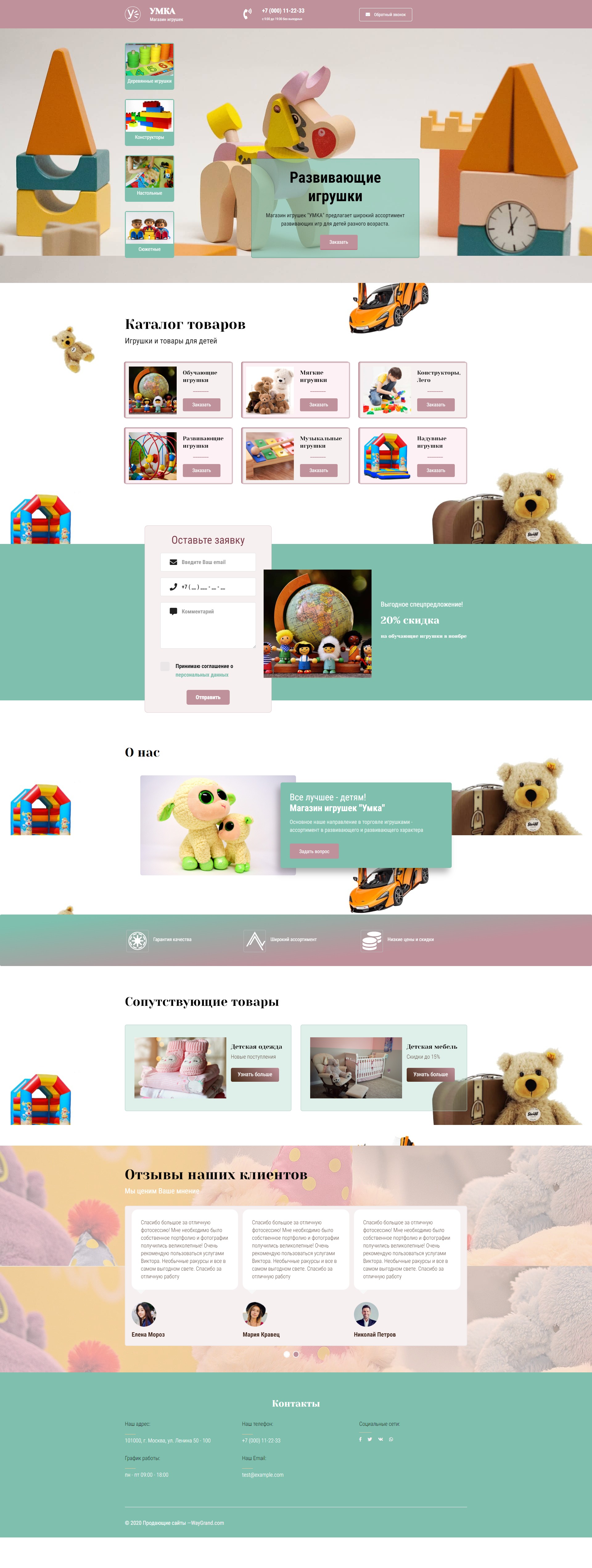 Закажите готовый продающий сайт лендинг #2442201 в Липецке за 1-3 дня «под ключ»: свёрстан, отрисован и готов к рекламе. Тематика шаблона «Магазин игрушек».