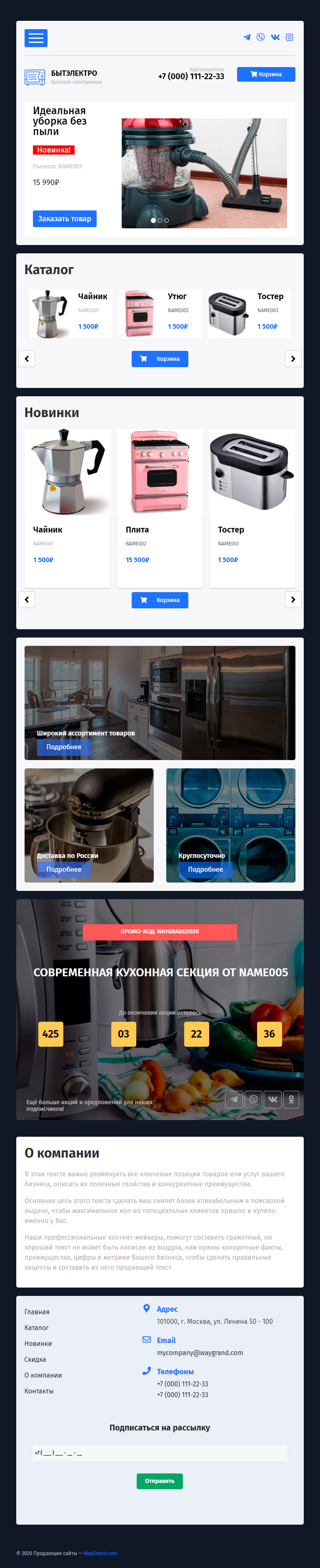 Закажите готовый продающий сайт лендинг #0703202 в Липецке за 1-3 дня «под ключ»: свёрстан, отрисован и готов к рекламе. Тематика шаблона «Продажа бытовой электроники».