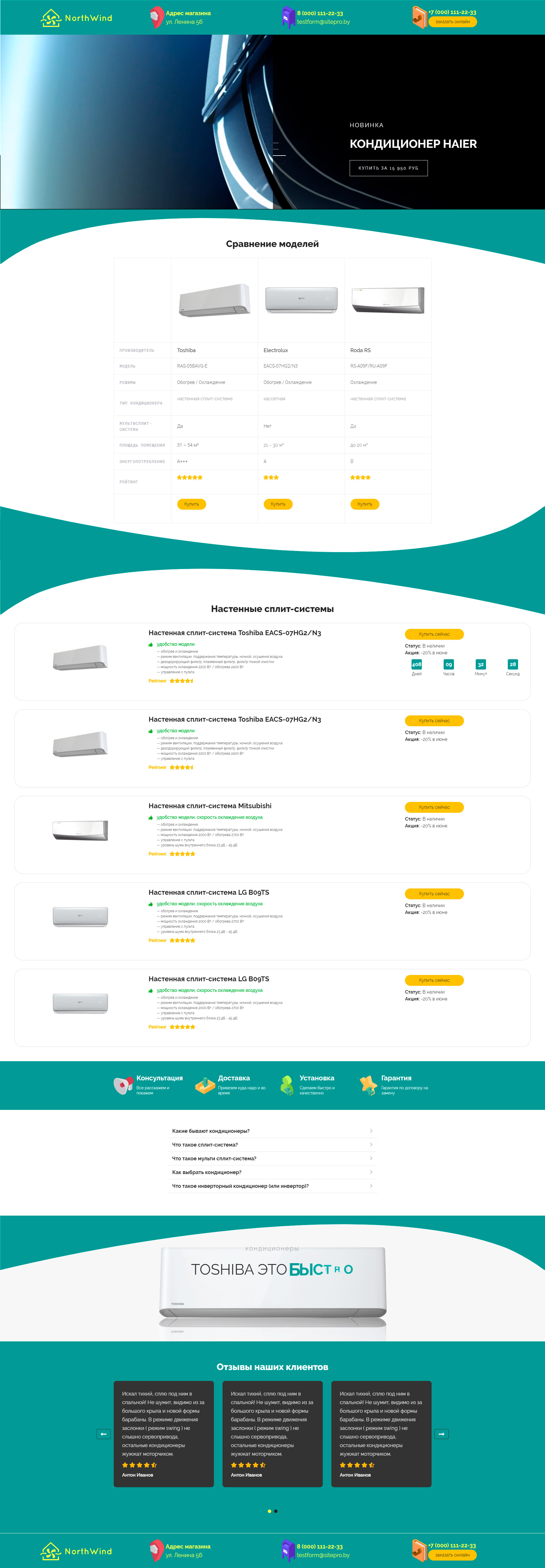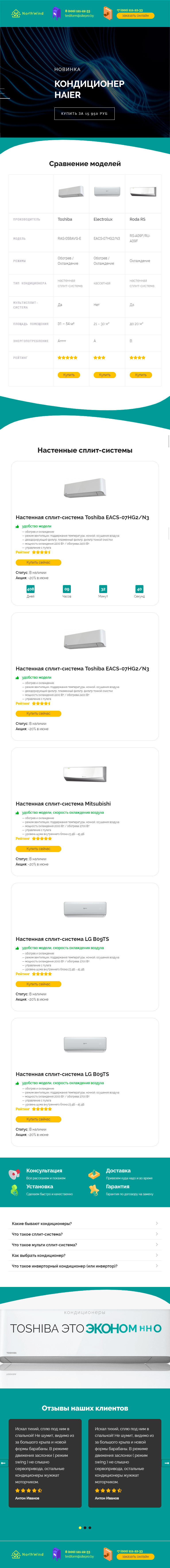 Закажите готовый продающий сайт лендинг #1323201 в Липецке за 1-3 дня «под ключ»: свёрстан, отрисован и готов к рекламе. Тематика шаблона «Кондиционеры».