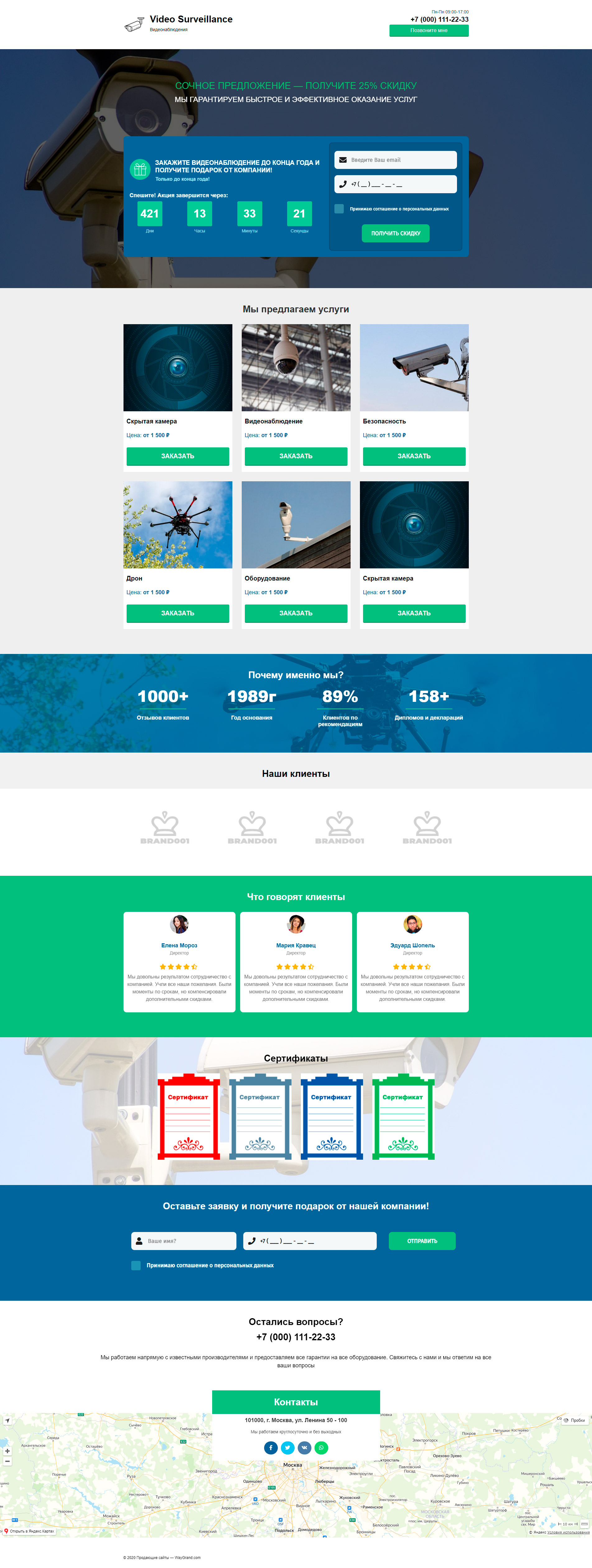 Закажите готовый продающий сайт лендинг #1609201 в Липецке за 1-3 дня «под ключ»: свёрстан, отрисован и готов к рекламе. Тематика шаблона «Видеонаблюдение».
