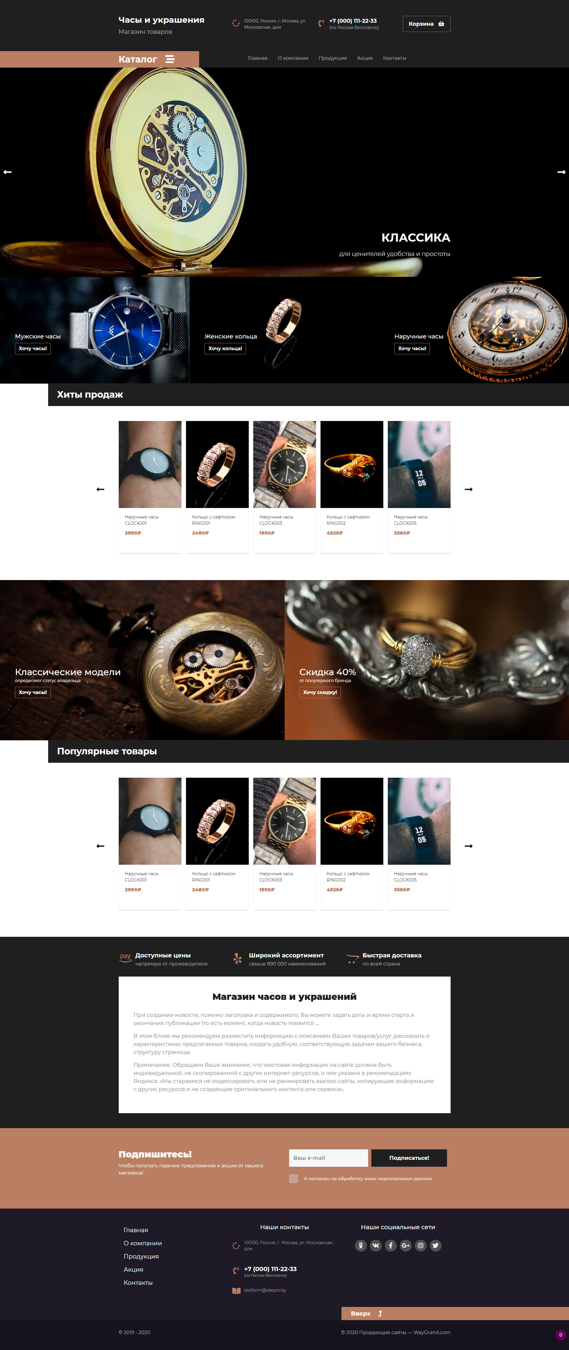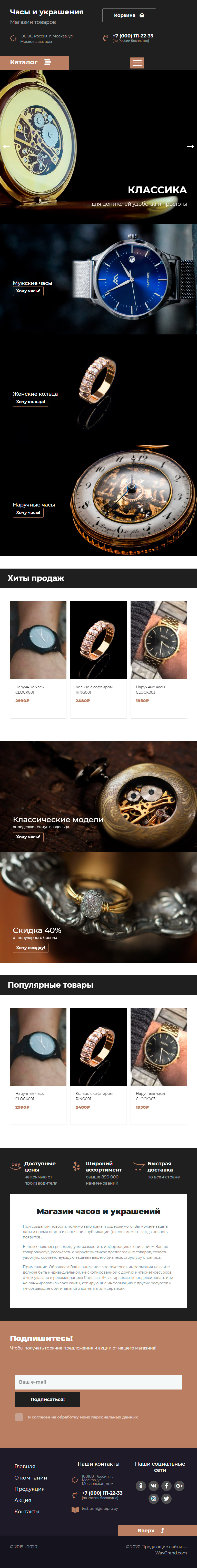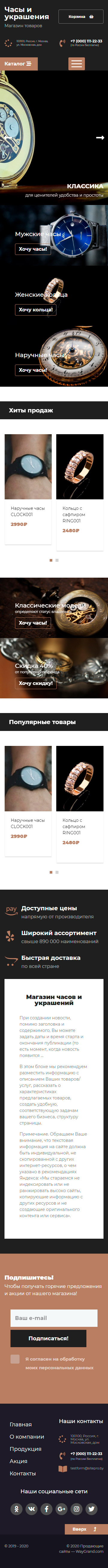 Закажите готовый продающий сайт лендинг #2437201 в Липецке за 1-3 дня «под ключ»: свёрстан, отрисован и готов к рекламе. Тематика шаблона «Часы и украшения».