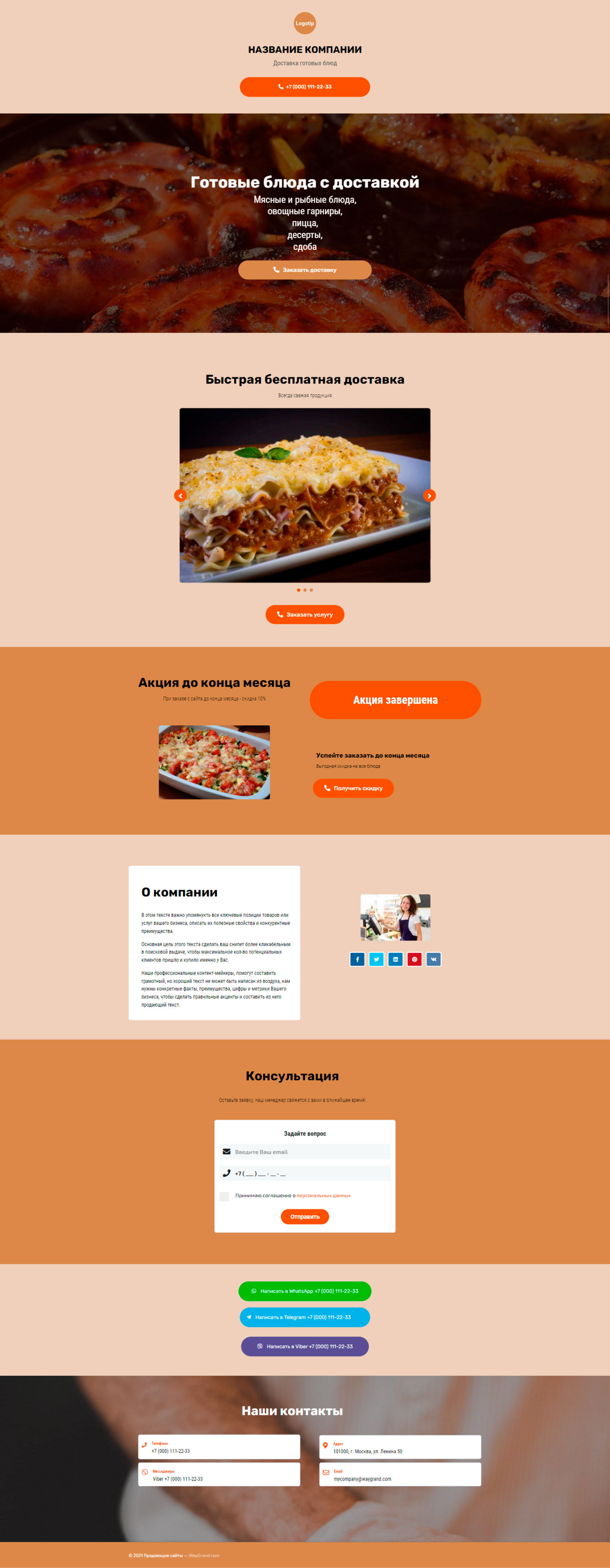 Закажите готовый продающий сайт визитка #0422101 в Липецке за 5-7 дня «под ключ»: свёрстан, отрисован и готов к рекламе. Тематика шаблона «Готовые блюда с доставкой».