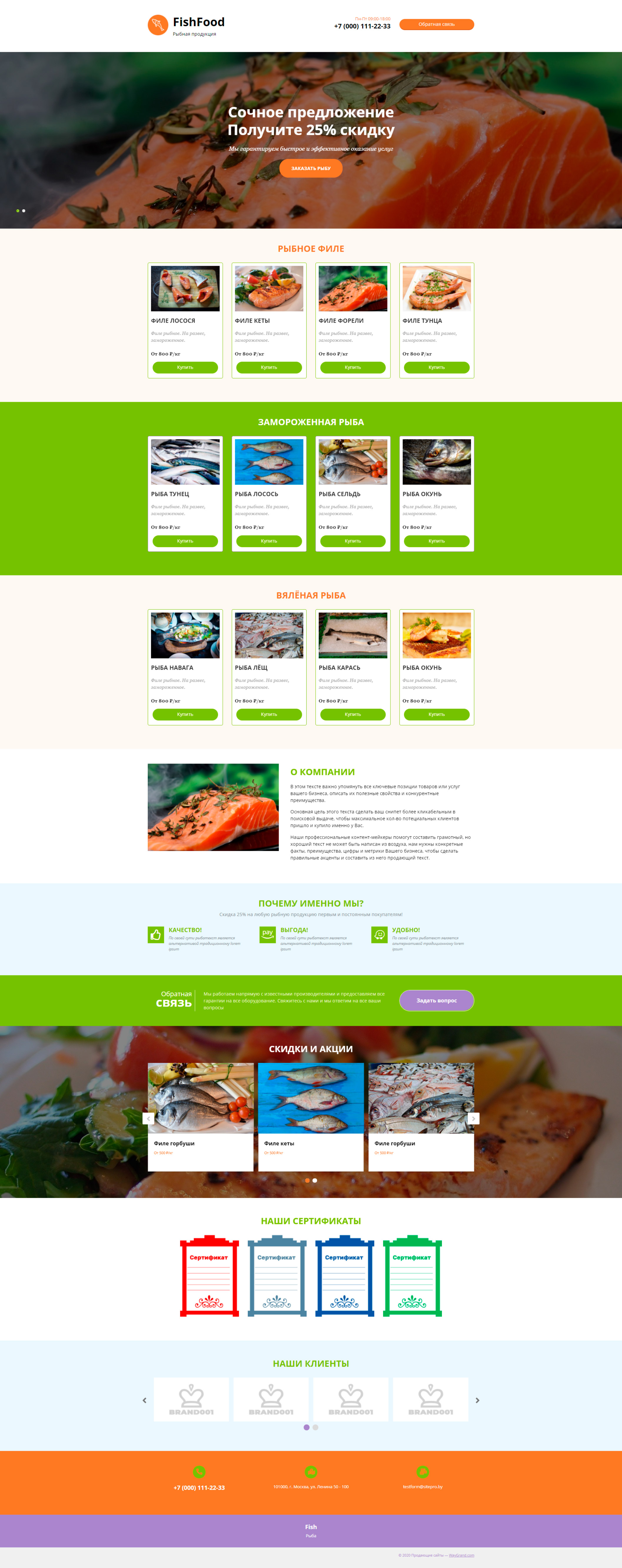 Закажите готовый продающий сайт лендинг #1731202 в Липецке за 1-3 дня «под ключ»: свёрстан, отрисован и готов к рекламе. Тематика шаблона «Рыбная продукция».