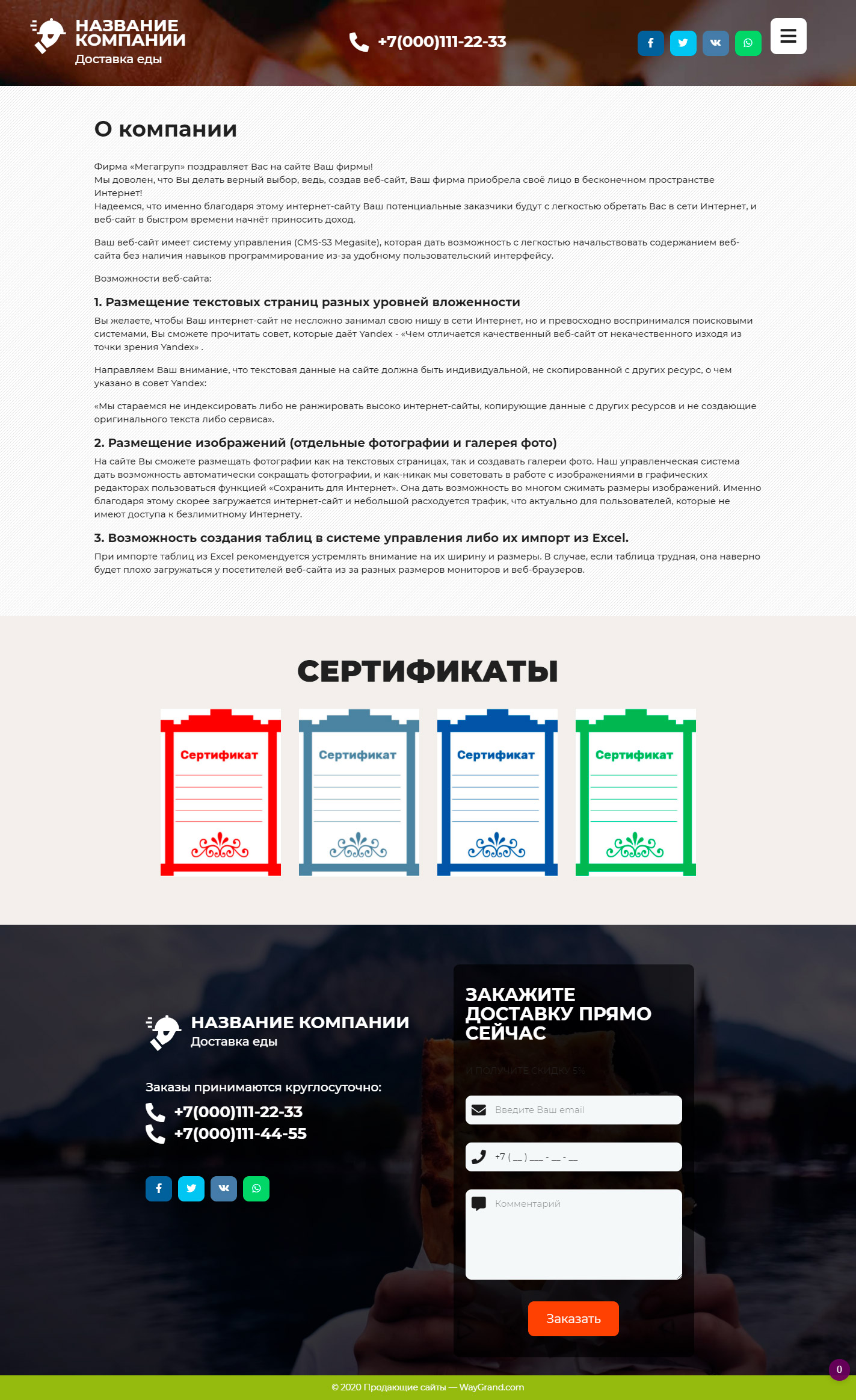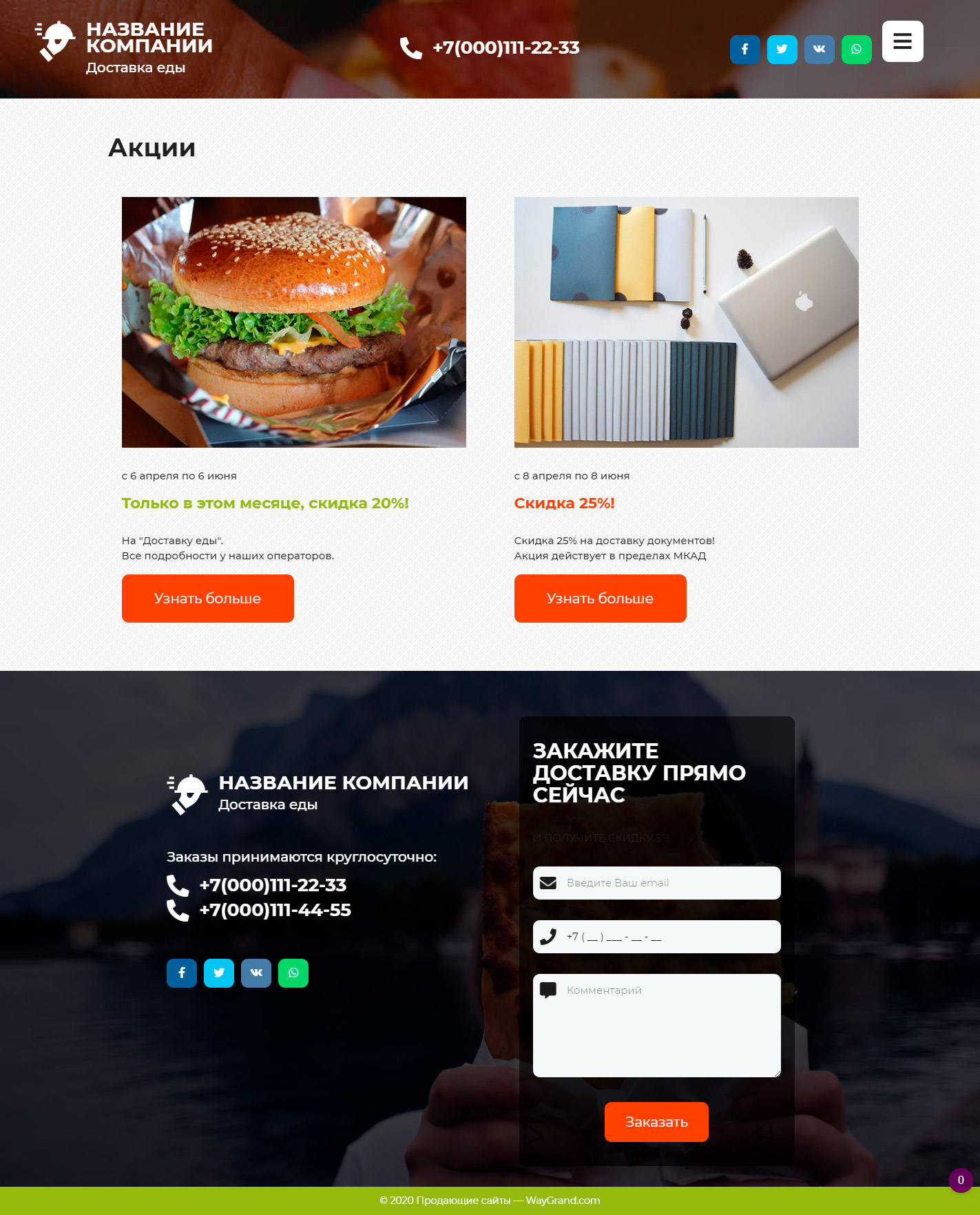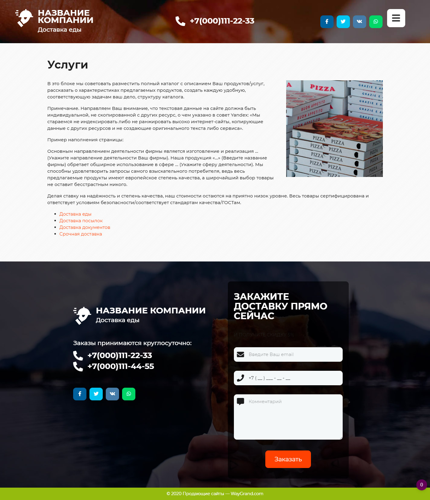 Готовый сайт визитка Курьерская доставка еды #3071302 — Купить на WayGrand.com в Липецке