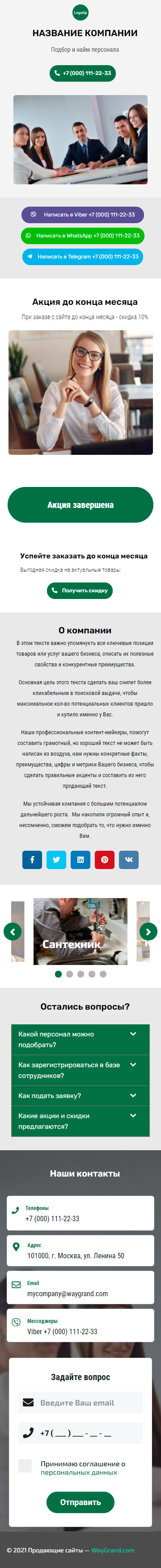 Закажите готовый продающий сайт визитка #1415101 в Липецке за 5-7 дня «под ключ»: свёрстан, отрисован и готов к рекламе. Тематика шаблона «Подбор и найм персонала».