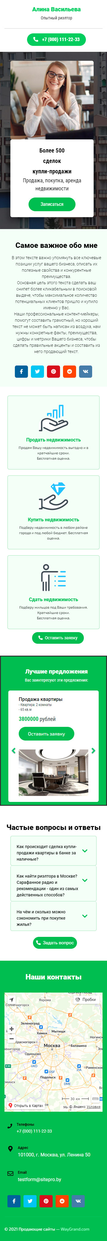 Закажите готовый продающий сайт визитка #2102101 в Липецке за 5-7 дня «под ключ»: свёрстан, отрисован и готов к рекламе. Тематика шаблона «Опытный риэлтор».