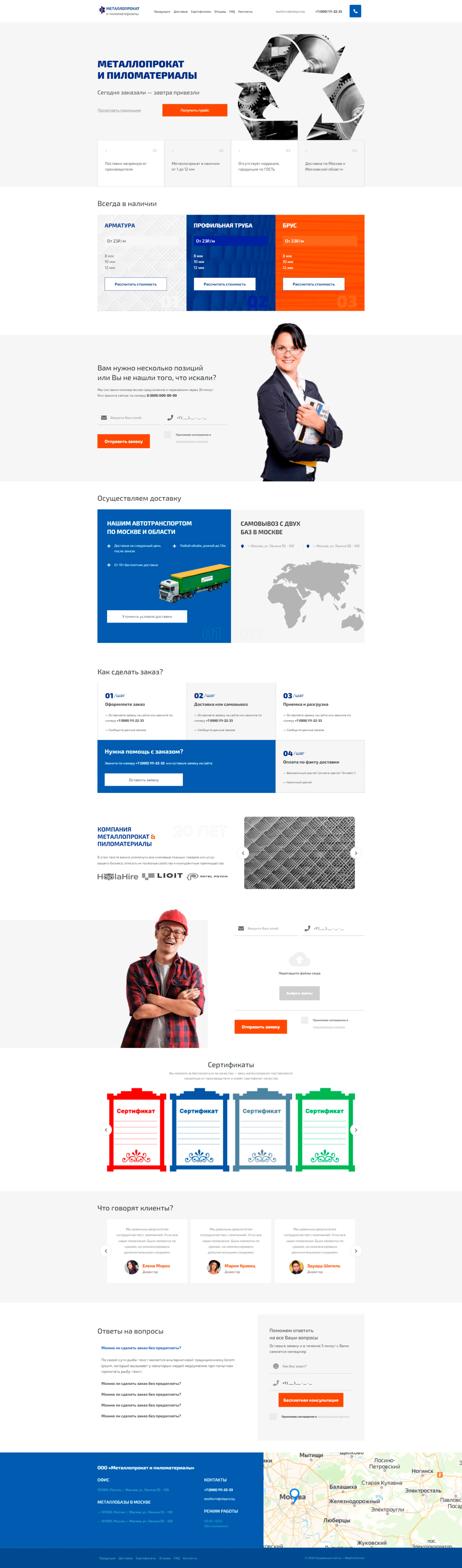Закажите готовый продающий сайт лендинг #1211201 в Липецке за 1-3 дня «под ключ»: свёрстан, отрисован и готов к рекламе. Тематика шаблона «Металлопрокат и пиломатериалы».