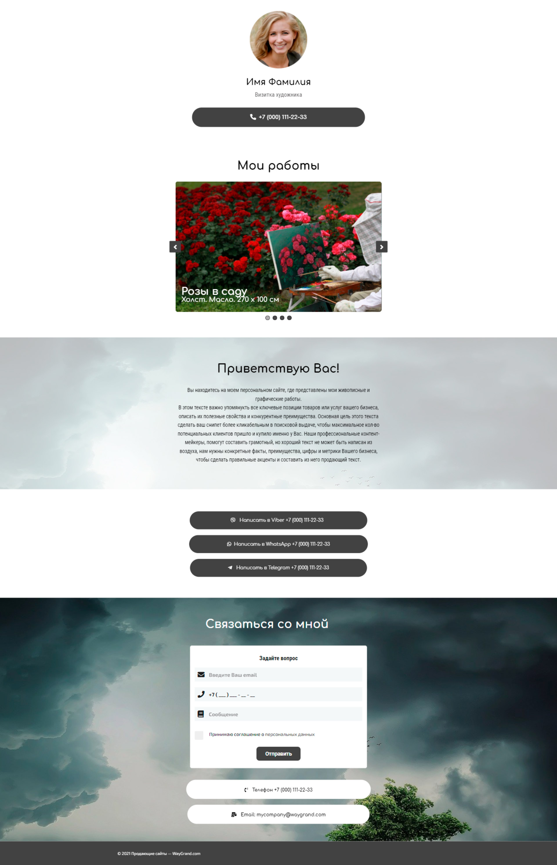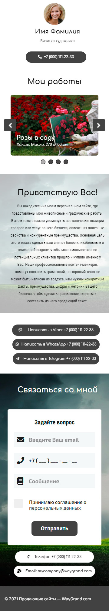 Закажите готовый продающий сайт визитка #0826101 в Липецке за 5-7 дня «под ключ»: свёрстан, отрисован и готов к рекламе. Тематика шаблона «Визитка художника».
