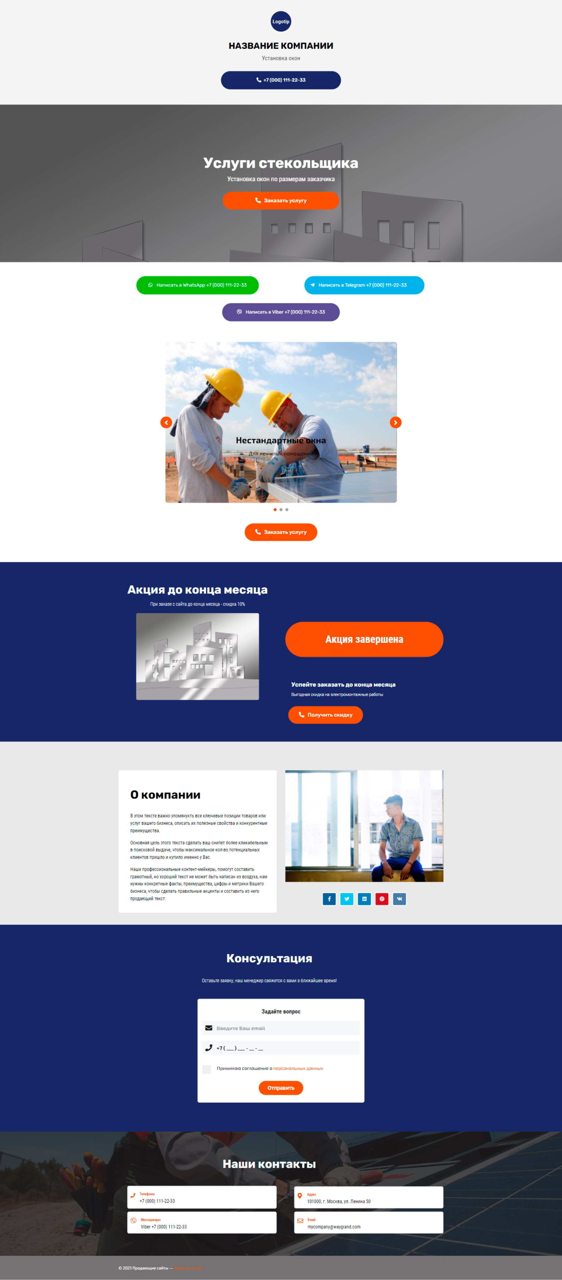 Закажите готовый продающий сайт визитка #2138101 в Липецке за 5-7 дня «под ключ»: свёрстан, отрисован и готов к рекламе. Тематика шаблона «Установка окон».