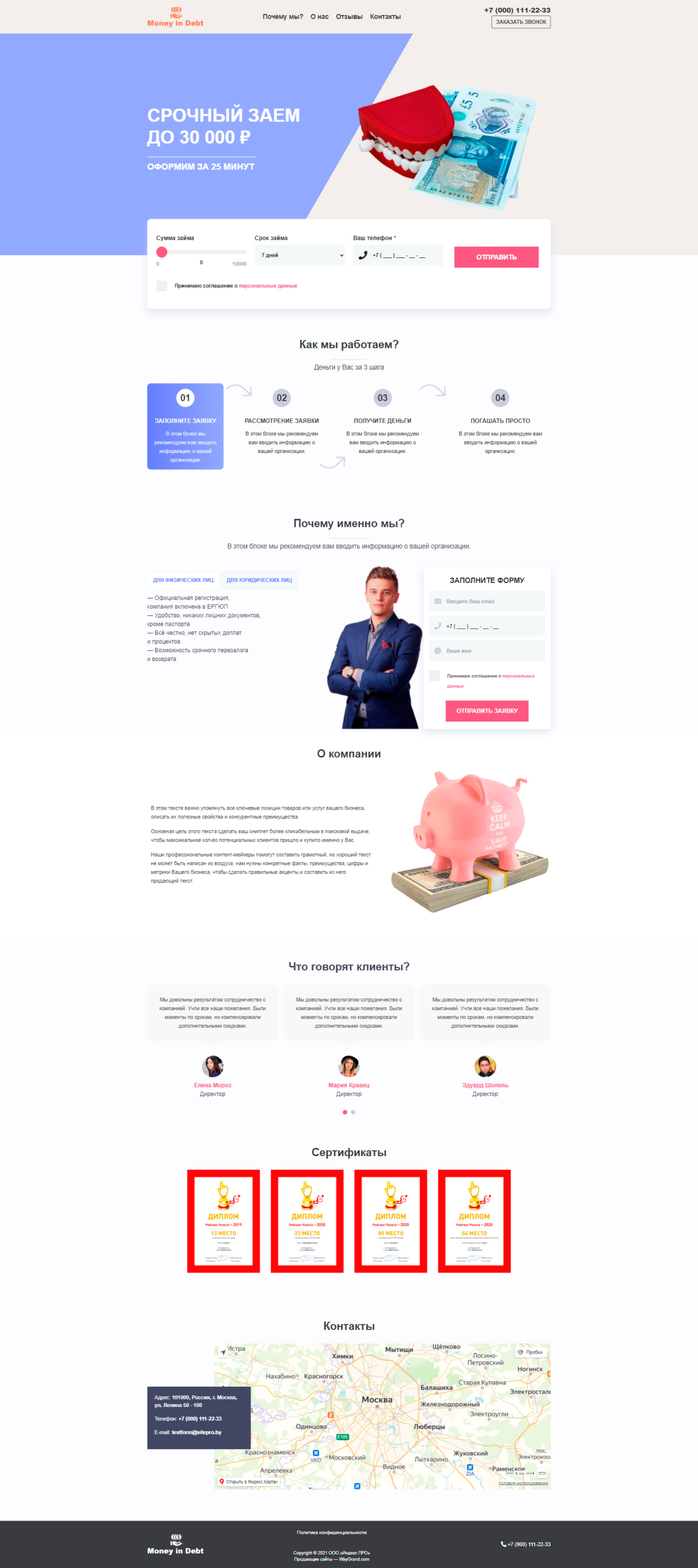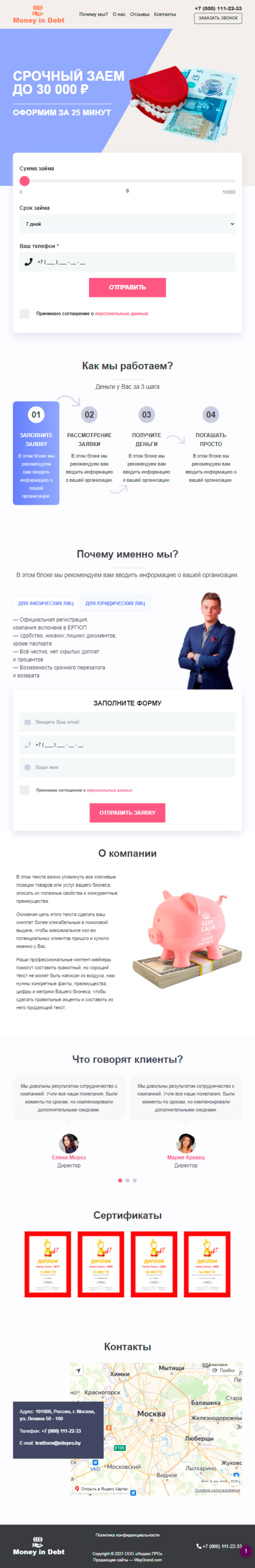 Закажите готовый продающий сайт лендинг #2825202 в Липецке за 1-3 дня «под ключ»: свёрстан, отрисован и готов к рекламе. Тематика шаблона «Деньги в долг».