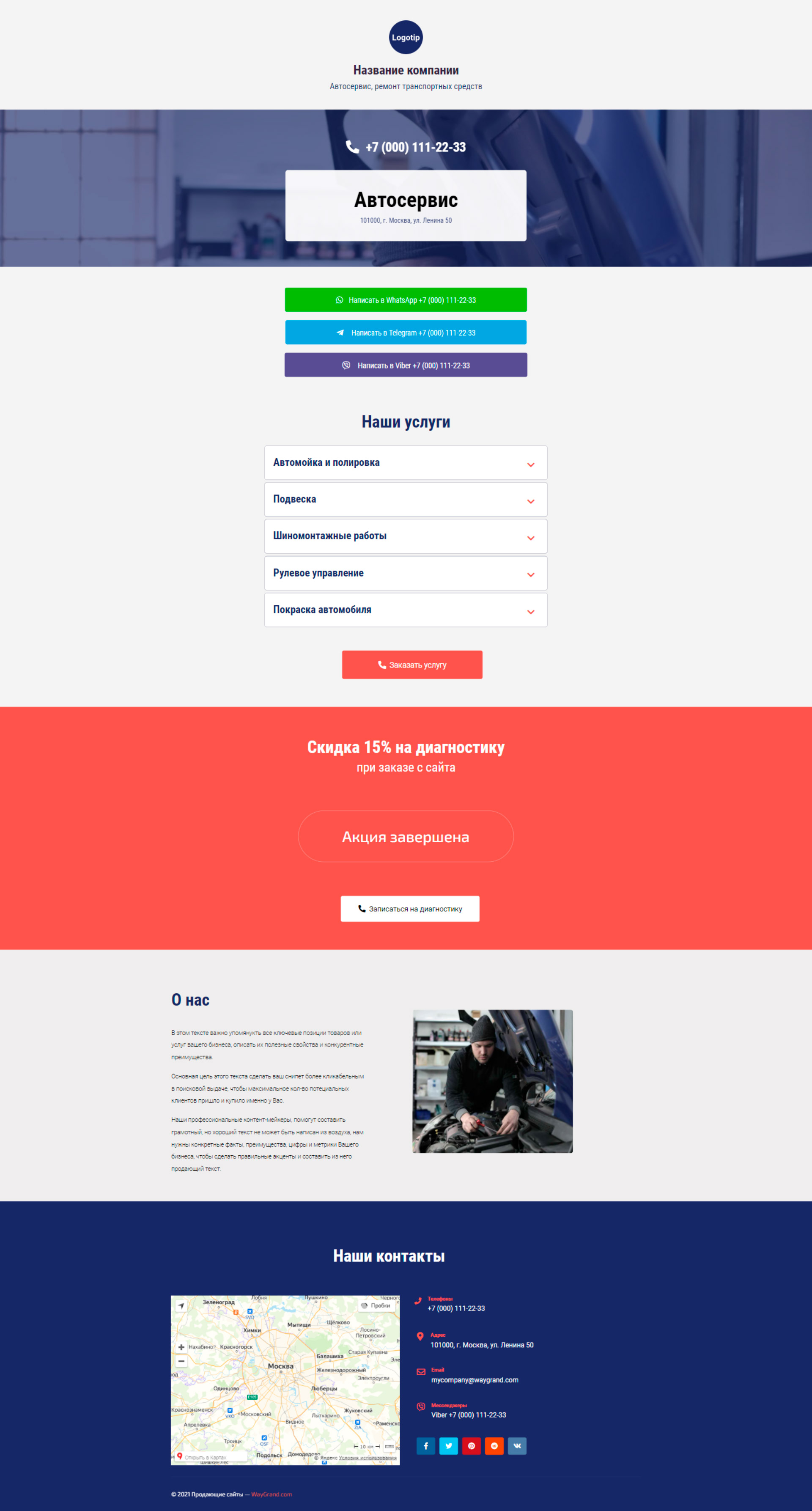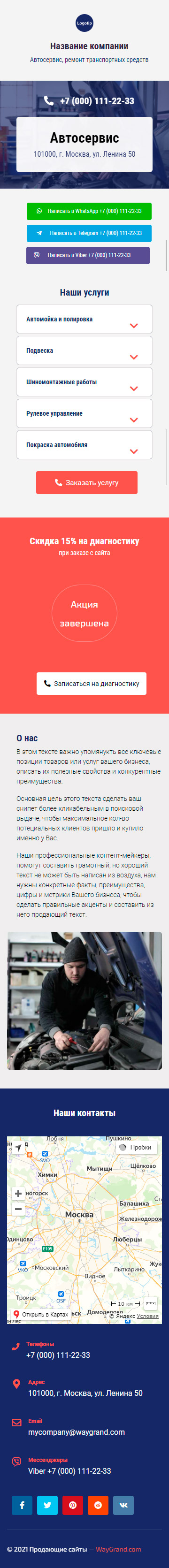 Закажите готовый продающий сайт визитка #0210101 в Липецке за 5-7 дня «под ключ»: свёрстан, отрисован и готов к рекламе. Тематика шаблона «Автосервис, ремонт транспортных средств».