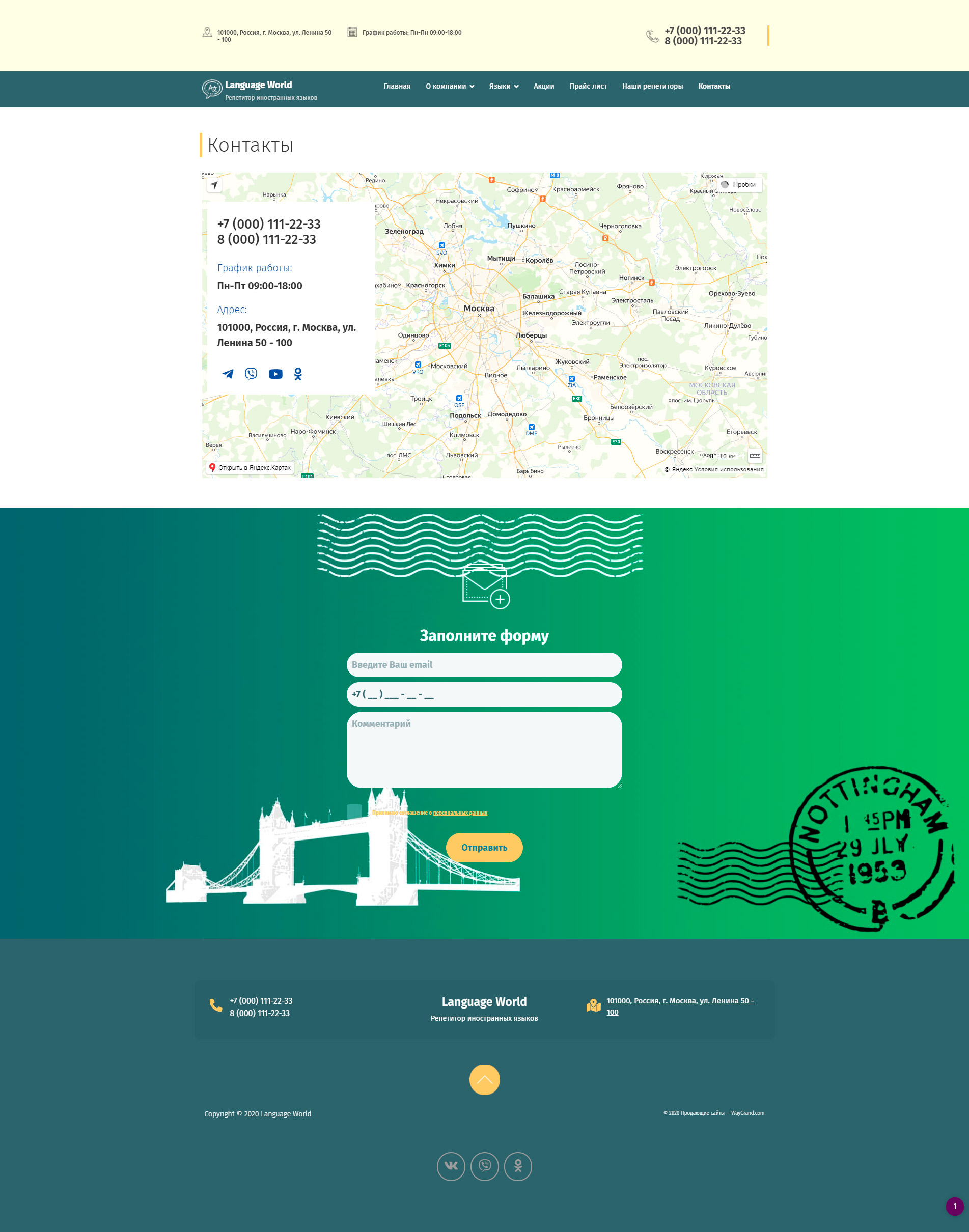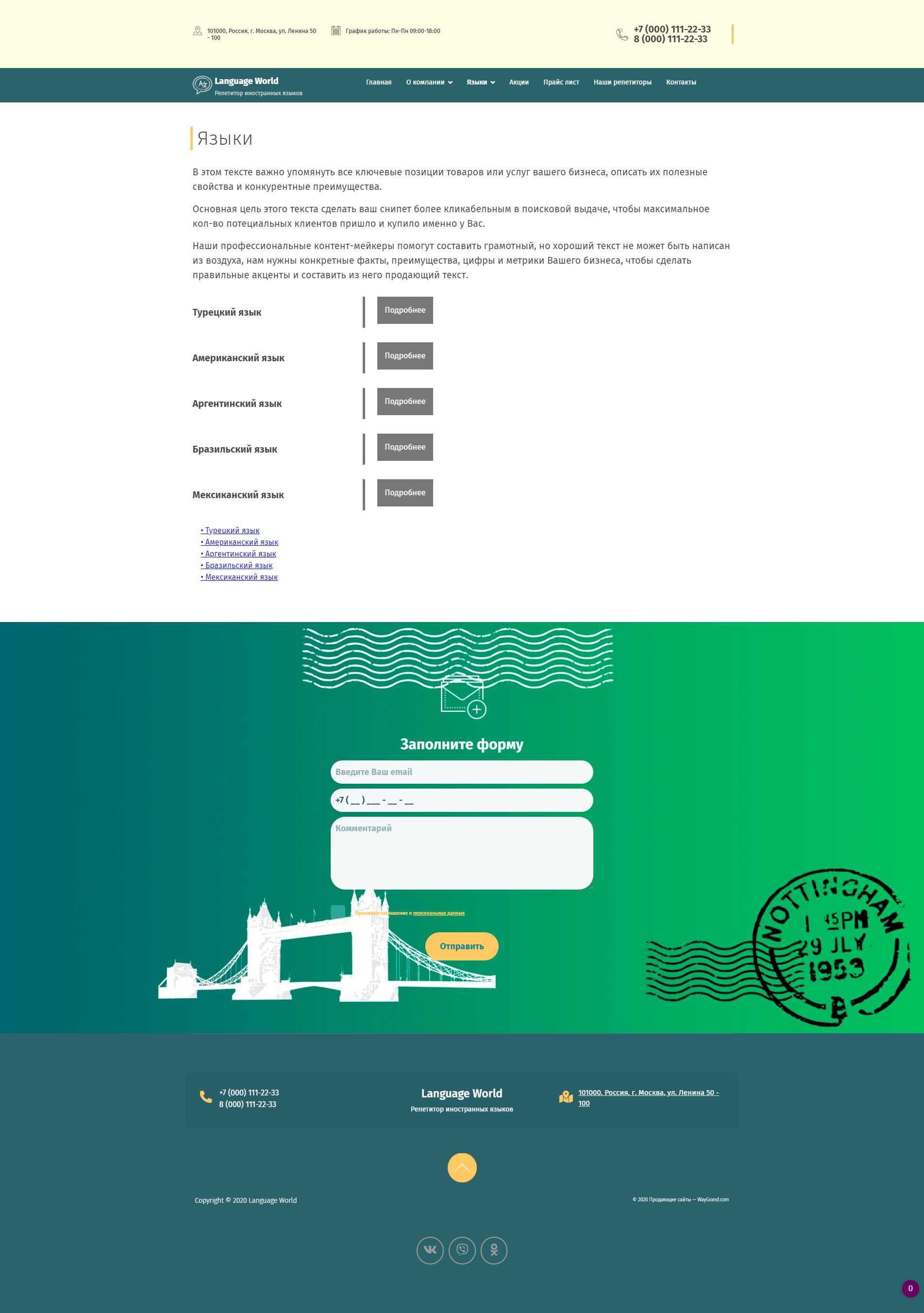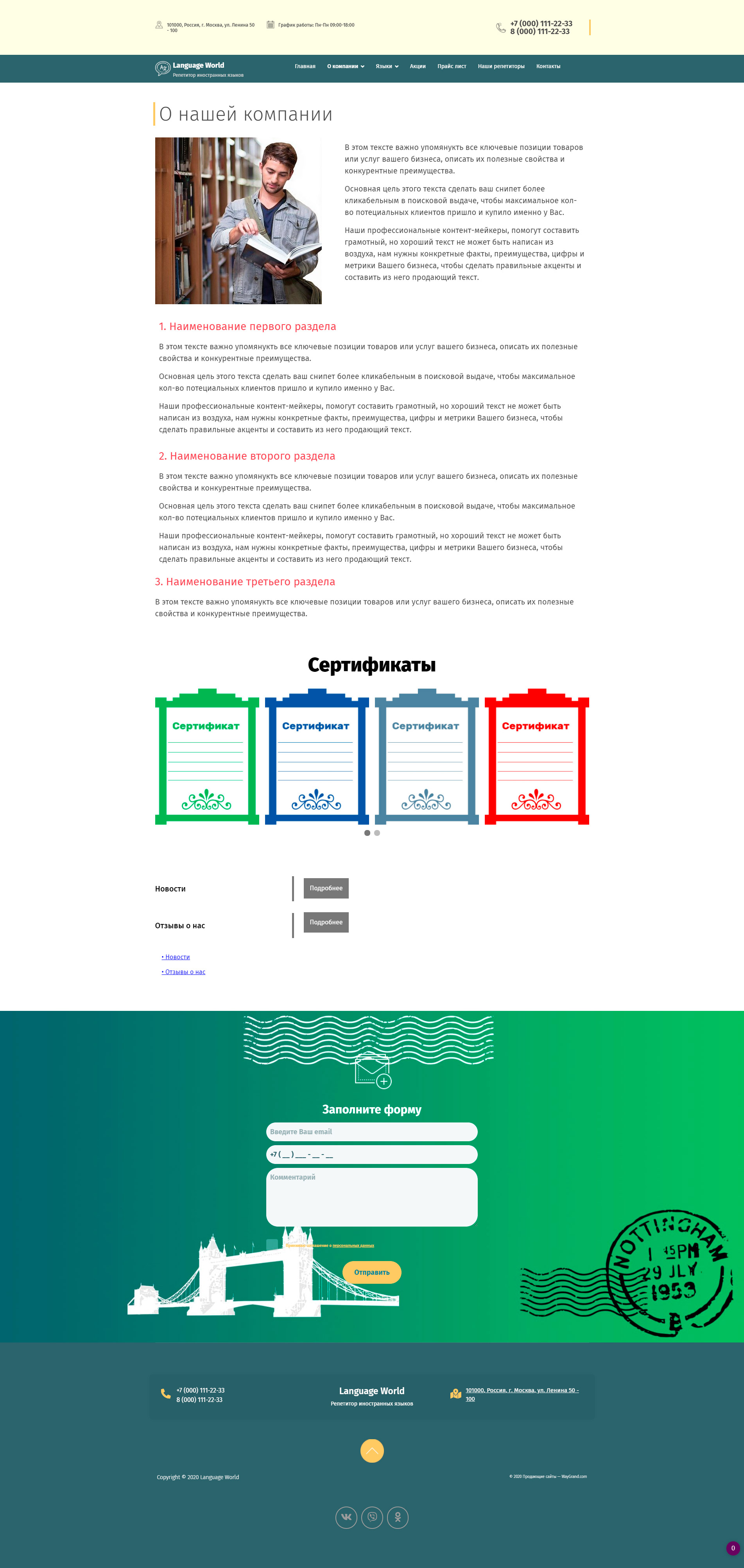 Закажите готовый продающий сайт визитка #1448302 в Липецке за 5-7 дня «под ключ»: свёрстан, отрисован и готов к рекламе. Тематика шаблона «Репетитор иностранных языков».