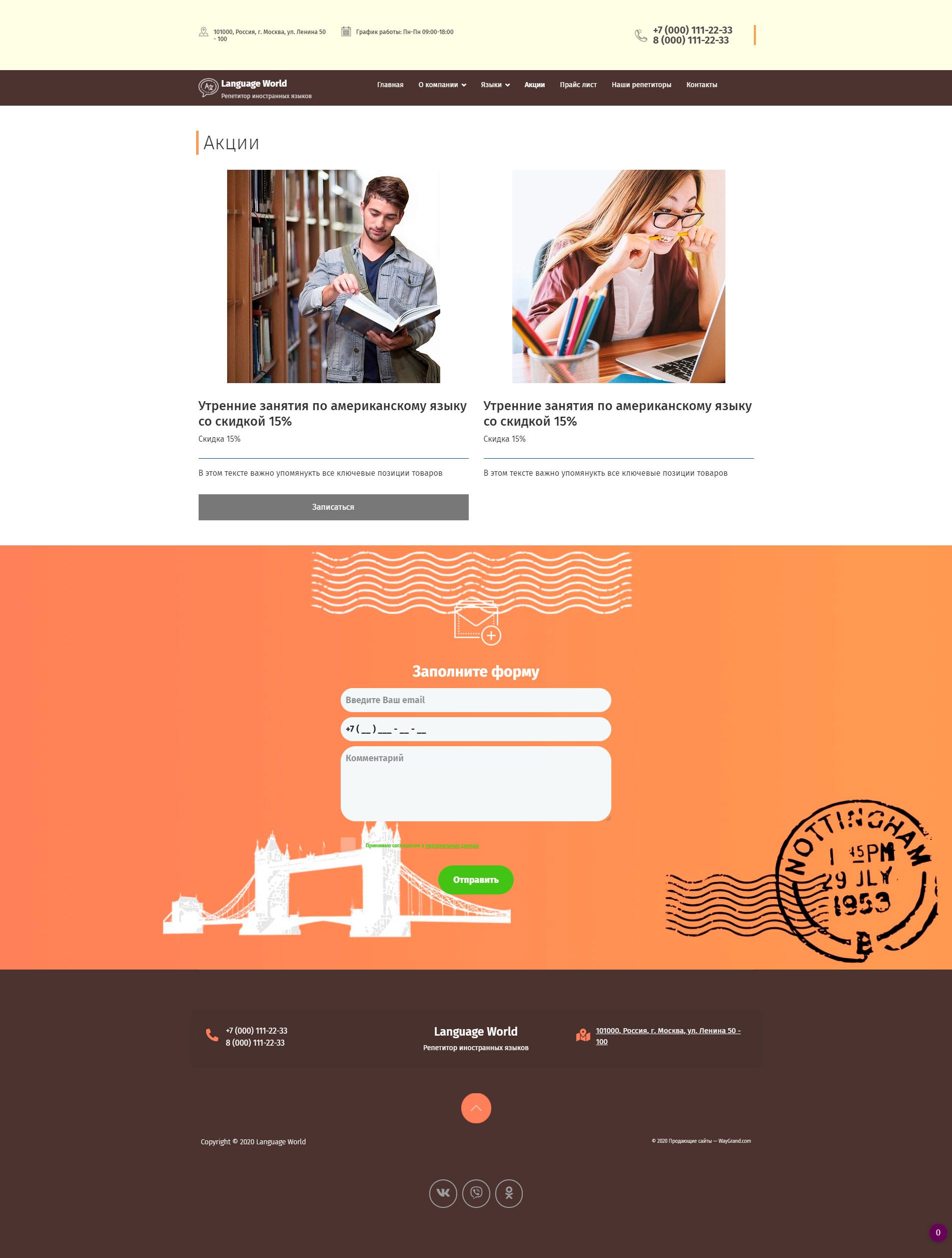 Закажите готовый продающий сайт визитка #1448303 в Липецке за 5-7 дня «под ключ»: свёрстан, отрисован и готов к рекламе. Тематика шаблона «Курсы иностранных языков».