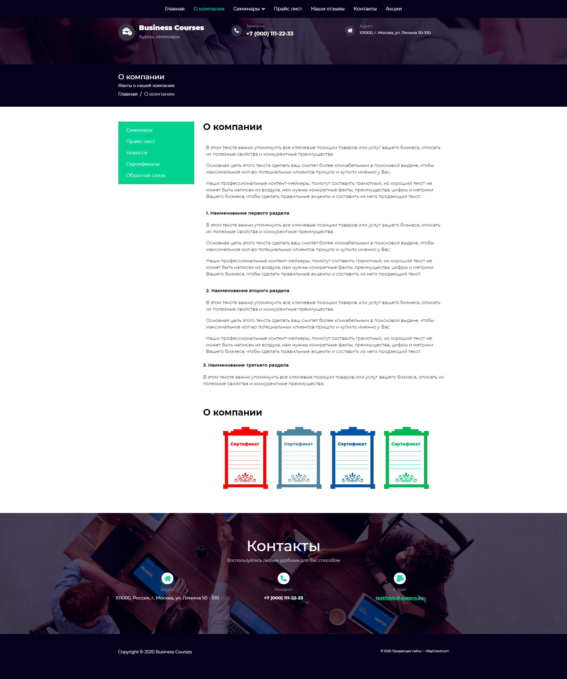 Закажите готовый продающий сайт визитка #1448303 в Липецке за 5-7 дня «под ключ»: свёрстан, отрисован и готов к рекламе. Тематика шаблона «Бизнес курсы и семинары».