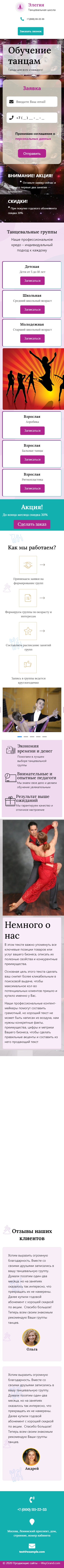 Закажите готовый продающий сайт лендинг #1923201 в Липецке за 1-3 дня «под ключ»: свёрстан, отрисован и готов к рекламе. Тематика шаблона «Обучение танцам».