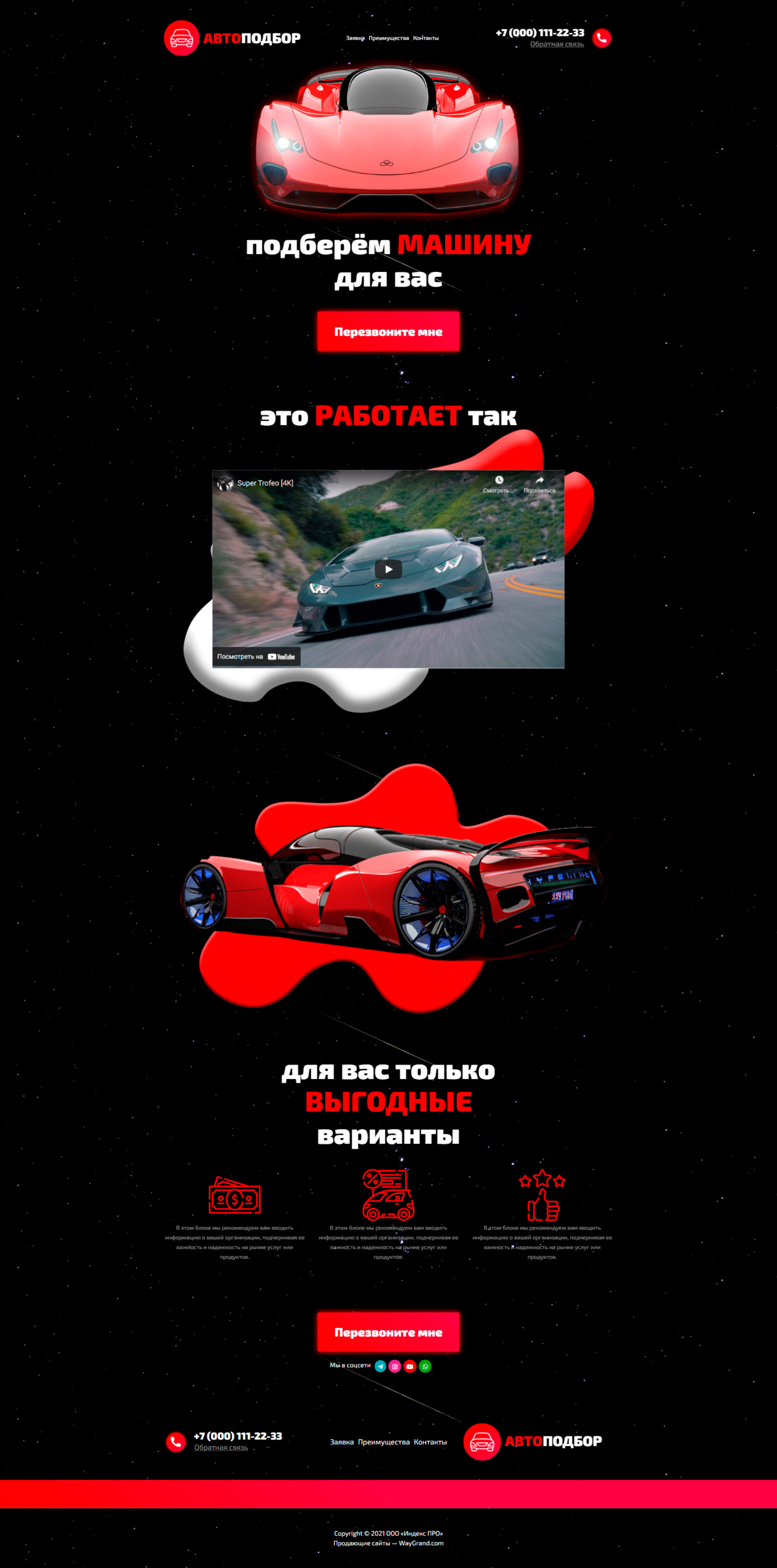 Закажите готовый продающий сайт лендинг #3275201 в Липецке за 1-3 дня «под ключ»: свёрстан, отрисован и готов к рекламе. Тематика шаблона «Автоподбор».