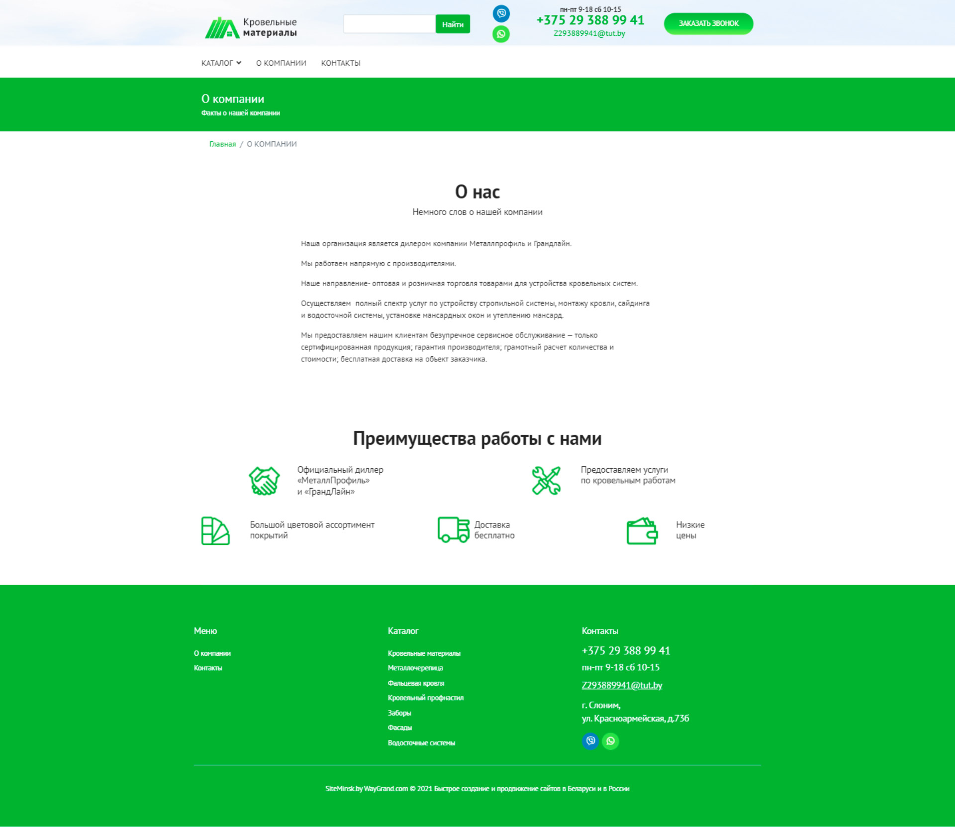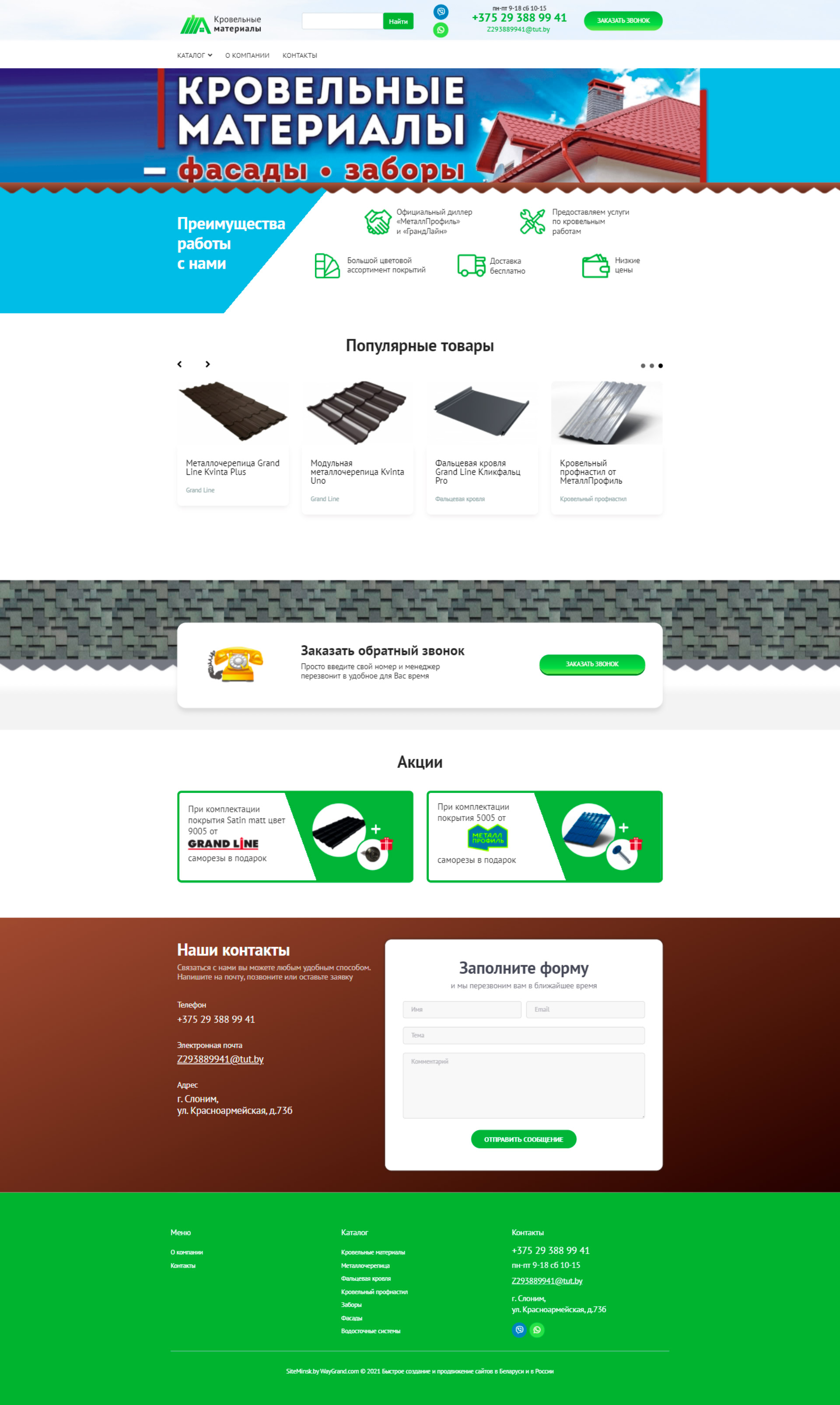 Закажите готовый продающий сайт визитка #324 в Липецке «под ключ» на waygrand по выгодной цене: свёрстан, отрисован и готов к рекламе. Тематика шаблона «Кровельные материалы».