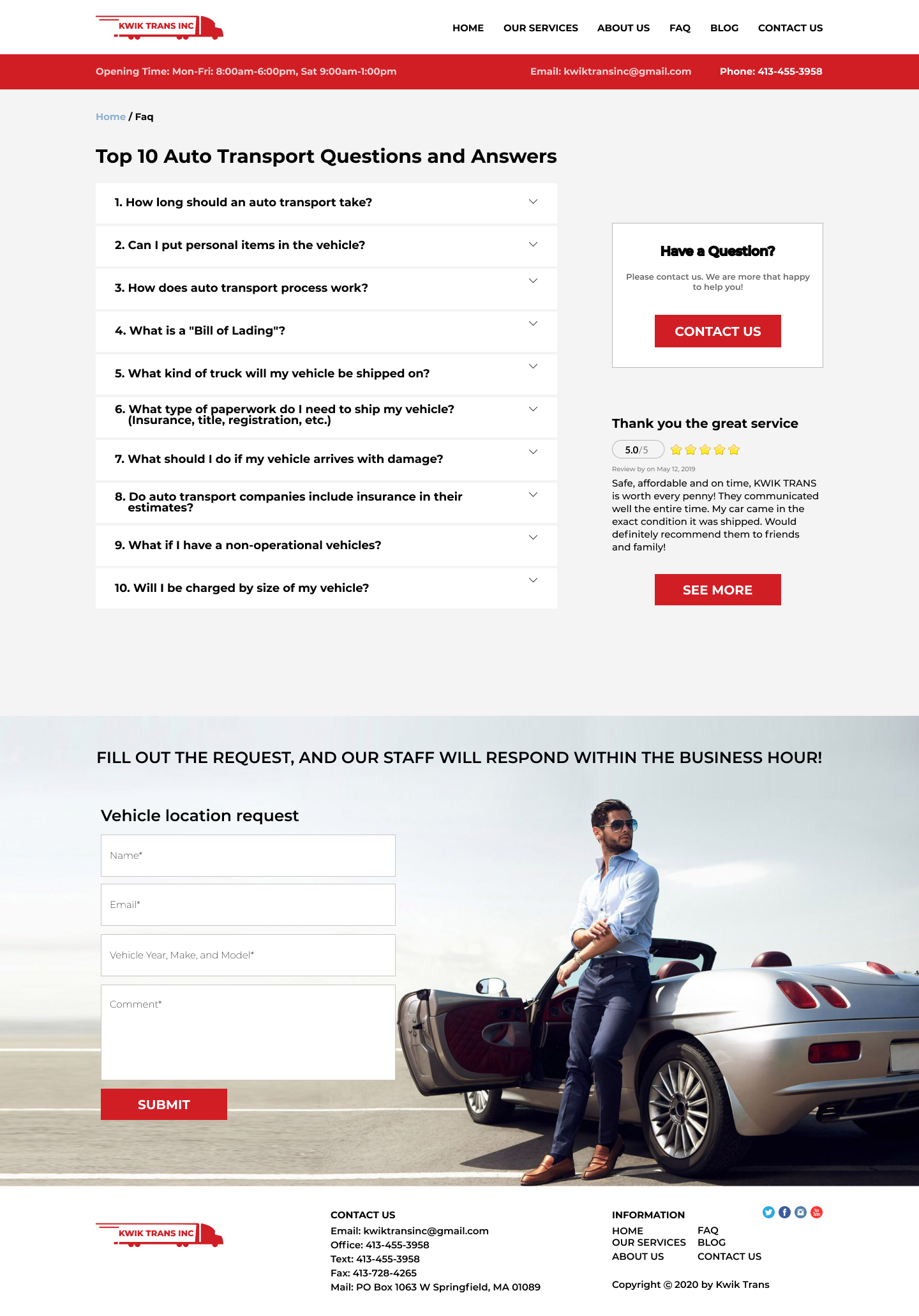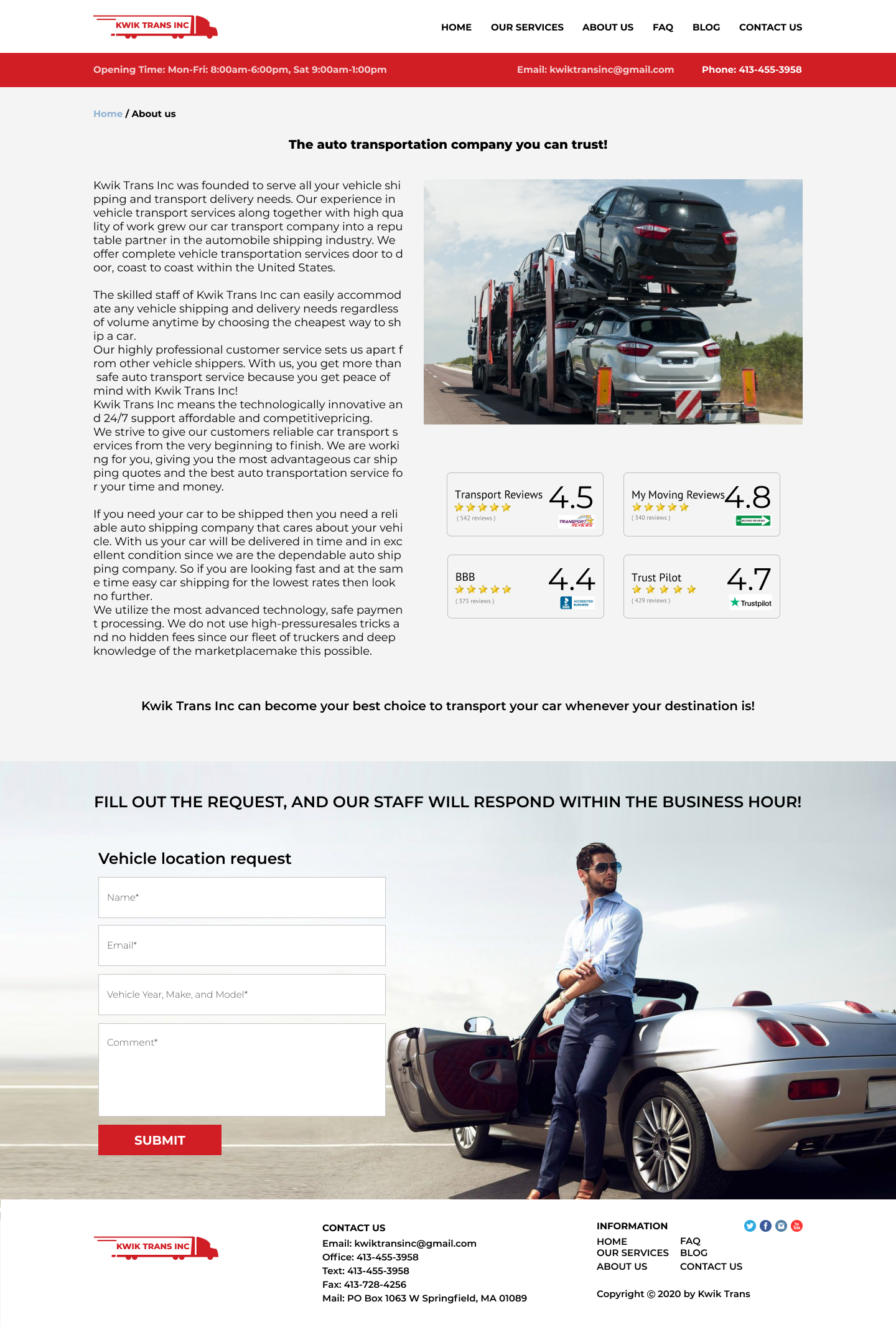 Закажите готовый продающий сайт визитка #223 в Липецке за 5-7 дня «под ключ»: свёрстан, отрисован и готов к рекламе. Тематика шаблона «Safe & Reliable National Auto Transport».